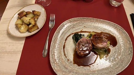 Please read this review: Nice restaurant with friendly service and stuff. We didn’t receive full menu, had expensive menu with very limited expensive dishes. The other guests were eating all the things that wasn’t on the menu we got. I don’t know why was that, didn’t ask. First dish with no taste at all for a lot of money, we returned the dish and didn’t had to pay for. Thats a +! Very frendly response. Second dishes were okay, but not the taste you expect for that value. Honestly I’m very sorry we felt that way but all in all, a nice place with good service! I didn’t quite understand Risotto - without any taste. Stuff member said that this is “our” toscanian dish and we just didn’t like it. I asked him what should we taste here and didn’t got the answer. Griled chicken was smal, plating was terrible - just a small piece of old and undercooked chicken with bones mostly on a few leaves of dry untasty salad for 16eur. You can do better. Very good stuffed rabbit dish. Wanted to buy a desert but haven’t had courage to do so. I was afraid that I would again pay a lot...