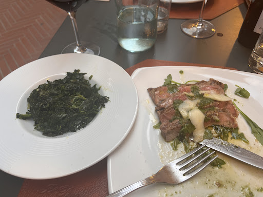 We found this place through the recommendation of the hotel concierge. The premise is an old house (ok, almost all houses in the ancient city of S. Gimignano are old...) in the alley right inside of the city wall. We have been there two times. At the first visit, we shared the mixed bruschetta as antipasti, then my husband had the stozzapretti with pigeon meat ragu, and I the tagliata classic as main course. The food was simple but good - my husband, as a devoted pigeon fan, liked his noodle. I was not very hungry (after a snack plate in the wine bar right beforehand), but found the tagliata a nice one. Then we noticed the two-person dinner set on the menu and decided to have another try on the next day. Normally in the region the famous biscetta florentina (T-bone steak) are sold by weight. And this set dinner offered antipasti (bruschetta), biscetta, white beans, a bottle of water and espresso with fixed price, which we found interesting. And for this set the coperto ("table charges") is included. The biscetta had some 600 g meat, which we considered a good portion for two. It looked a bit rare but not too bloody (the front part was like medium in fact). And it tasted well. The white bean with olive oil was fundamental, but tasted fine to me (as non-white bean fan). And finally we ate up almost everything. The young and energetic service staff were very friendly; the menu were bilingual with the origin of ingredients well explained. The atmosphere was pleasant...