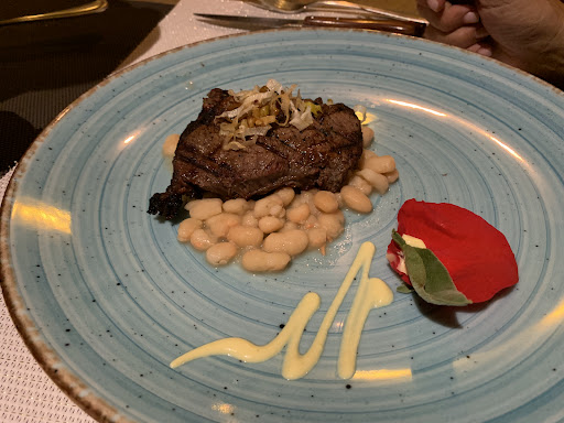 The evening started well as we were shown a nice table. Generally, the ambience is here is very nice. Unfortunately, everything else was a let down. My partners tagliata was inedible. She literally left most of it as it was just full of tough inedible bits. My Osso Buco was just about ok. The beans were not dissimilar to the ones you get in the UK with your breakfast. When the waiter asked us if we liked our meal, my partner showed her plate still at least half full of inedible leftovers. The waiter apologised but when he brought us the bill not only they did not deduct the price of the inedible dish, they overcharged for the wine and charges us for the full bottle instead of half bottle. The waiter started arguing with us but then when checked with the kitchen just brought us the difference in cash. This was a very disappointing experience and the worst meal we had in our week in Tuscany. Feels like a bit of a tourist trap...
