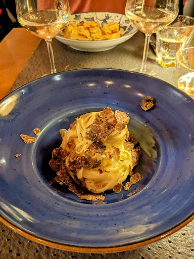 Read moreWe made an overnight trip to San Gimignano as part of our honeymoon and this restaurant is making us wish we'd stayed for longer. The staff are incredibly friendly. The venue as romantic as we'd hoped. Yes, the menu is in English, but that doesn't make this a tourist restaurant. You are going to be dining on the best, locally sourced Italian food you have ever had, all with a creative twist and in the company of locals. Raphael, the sommelier, walked us back into their wine room and chose a wonderful wine for our meal that perfectly complemented the food. We started with the baked onion filled with sausage, and I've never tasted an onion so sweet. Followed by the truffle pasta and a wild boar pasta, both were fantastic and unique - the portion on the wild boar pasta was big enough to share! We finished with the best tiramisu and chocolate lava cake we've had, and a lemoncello that had us asking Raphael where we could buy some. The whole meal was very reasonably priced, and actually cheaper than other far lower quality meals we've had in Florence.