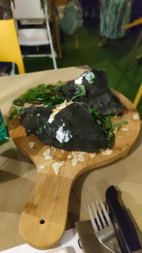 È una pizzeria esteticamente semplice, con un giardinetto sul retro illuminato da un graziosissimo tetto di lucine, ordinato, pulito e accogliente. Il personale è disponibile e adorabile, tutti sorridenti ed estremamente gentili e cordiali, è stato davvero un piacere scambiare due chiacchiere e soprattutto sanno consigliare molto bene. Bravi veramente e gentili. Il cibo... è strepitoso! Su consiglio del cameriere adorabile, abbiamo provato due panzerotti "speciali", impasto al carbone vegetale farciti con mozzarella in cottura, salmone affumicato, stracciatella e lamelle di mandorla e l'altro con bacon croccante, cipolla caramellata, glassa balsamica e stracciatella...buoni senza limiti, indescrivibili, belli da vedere, pieni e buoni spaziali! Poi una porzione famiglia di patatine croccantissime e una puccia croccante, con mortadella, provolone, nduja e funghi sott'olio. Tutto per appena 29 euro con le bevande. Che dire, eccezionale. E comunque, al netto del cibo ottimo, sostengo che, trovare un locale con personale cordiale, gentile, direi amichevole, oggi è una gran fortuna perché puoi mangiare bene in molti posti ma sentirti ben voluto e coccolato è raro....