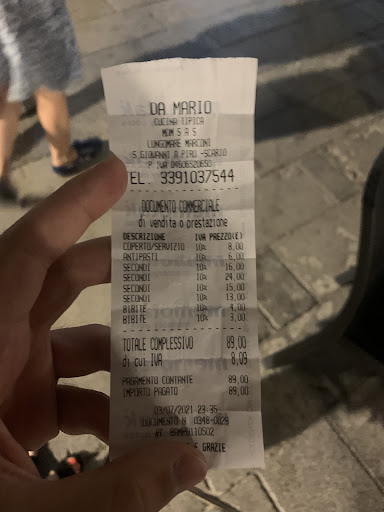 Alla fine ci hanno portato il conto ( in allegato la foto) Non sappiamo per cosa abbiamo speso i soldi: infatti avevamo mangiato due tonni alla griglia (identici) ma lo scontrino non riporta alcun prezzo uguale!