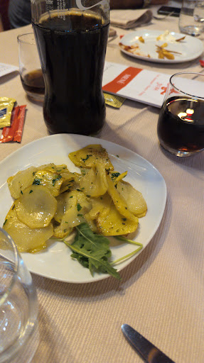 Le pietanze servite erano tutte buonissime , soprattutto la pizza servita al centro tavola durante l'antipasto caldo freddo. Passando al primo abbiamo gustato uno scialatello alla pecoraia fantastico, il secondo un capocollo di maiale così morbido che si scioglieva in bocca accompagnata da crema di zucchine alla scapace e tortino di patate " impacchiuse" e per concludere gelato e fragolata ...