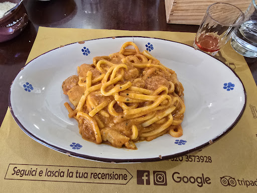 Il menu offre una varietà di piatti che combinano tradizione e innovazione in modo impeccabile. Ogni portata è un'esplosione di sapori autentici, preparata con ingredienti freschissimi e di alta qualità. Ho apprezzato particolarmente i primi piatti, in particolare i paccheri al pistacchio, guanciale e stracciatella, che erano assolutamente deliziosi. Anche i secondi non sono stati da meno, con carni cucinate alla perfezione e accompagnate da patate fritte croccanti e gustose.