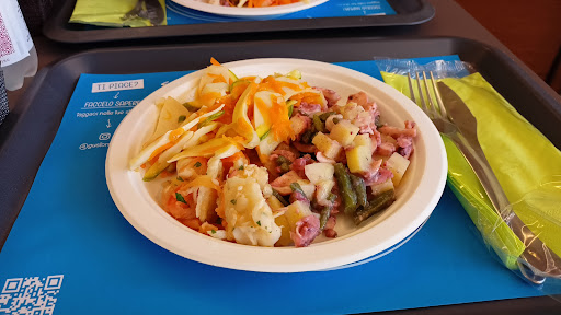 Locale piccolo ma grazioso, con qualche tavolino per consumare sul posto. Ragazza al banco molto gentile che mi ha spiegato che oltre al menù del giorno sono sempre a disposizione anche dei ragù di pesce bianco o rosso che possono essere preparati con la pasta che desideri (io un bel Passatelli di ragu' rosso di pesce molto buono), insieme a mezza d'acqua naturale ed uno spiedino di calamari, Totale 12€, tutto delizioso. Non è previsto servizio da cameriere ma ho trovato grande attenzione ai piatti/posate in carta ed alla raccolta differenziata. Tornerò stra-volentieri per una pausa pranzo veloce ma...
