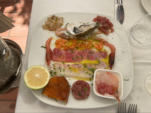 Incredibile serata. Sono stata con il mio ragazzo per festeggiare l'anniversario. Non potevamo scegliere di meglio. Abbiamo trovato esattamente il vino che ci piace. Tutti i camerieri estremamente gentili, aspettavano attenti che arrivasse il momento di liberarci dai piatti vuoti. Vuoti ma ripuliti con una "scarpetta" che è davvero partita dal cuore. Volevamo assolutamente ripulire tutti i piatti. Ogni portata è stata fenomenale! Dagli antipasti fino al dolce. Abbiamo avuto modo di godere della Tartare di tonno e dei crostini di ricci (siamo rimasti entrambi senza parole per la qualità e prelibatezza degli ingredienti). I sapori si sposavano alla perfezione in qualsiasi piatto abbiamo assaggiato. Come primo lui ha preso una spaghettata ai ricci FENOMENALE! Di solito sono sempre scettica ad ordinare la pasta ai ricci per lo scarso condimento che si ritrova. Questa era perfettamente condita con una buona qualità di ricci e la cottura degli spaghetti era impeccabile! (qui c'è stata la scarpetta col pane, per raccogliere TUTTO il condimento residuo dal piatto). Di secondo abbiamo mangiato la degustazione di pesce con polpetta di tonno in foglia di limone, involtino di pesce spada, involto di tonno su asparago e pauro in crosta di patata. Tutto estremamente buono! Anche l'altro piatto con il filetto di tonno "quasi crudo" era davvero eccezionale! È stata una goduria! Infine ci siamo fatti tentare dal dessert e abbiamo preso un gelo di mandarino davvero ben fatto! Rinfrescante e leggero, un ottimo fine pasto per ripulirsi la bocca (anche se non è affatto necessario perché ogni piatto ti lascia un sapore che non potresti mai dimenticare e non vorresti mai togliere). Come ultimo dolce abbiamo assaporato dei cannolicchi di ricotta in crosta di mandorle e miele. Strepitosi! (da aspettarsi, ovviamente, l'effetto caramellato che lascia un po' fra i denti). Che dire...una cena unica nel suo genere, che ha caratterizato egregiamente la nostra occasione di festa. Tutto eccessivamente buono (uso questo termine perché mi verrebbe voglia di mangiarci ogni mese, potendoselo permettere). Ovviamente con una cena così completa a base di pesce non ci si può aspettare un conto basso, ma devo dire che il prezzo è assolutamente tutto meritato! Lo consiglio vivamente per occasioni speciali. La location risulta ottima per cene romantiche ma anche familiari. Non vedo l'ora di provare il...