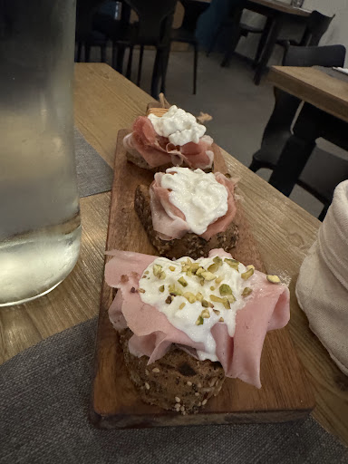 Read moreLocale molto molto carino, un bel mix tra enoteca e ristorante. Trovato per caso, in cerca di una sosta da un piccolo viaggio di lavoro. I cicchetti strepitosi, gentilissimi nell’accontentarci con una ‘personalizzazione’ fuori menù e molto buona la carne servita pienamente in linea con le nostre richieste: mio marito al sangue, la mia ben cotta; ottime le zucchine al forno per non parlare del pane caldo e croccante servito all’inizio… Cenetta super! Titolare semplicemente...