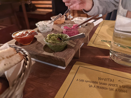 Read moreSolida istituzione oramai radicata nella tradizione veronese. Isola felice celebre per la convivialità, l’assidua frequentazione che ti spinge a tornare e ritornare infinite volte, la profusione di cibarie e la ricchezza di eventi, cene a tema, degustazioni, pietanze atipiche ed esperienze a volontà. Su quest’ultime la Porto Mancino ha costruito sapientemente un vero e proprio business, che inonda costantemente entrambi i locali di clientela affezionata attratta dalla novità del mese. Alcuni si ripetono con frequenza settimanale, altri a spot, senza timore di perderseli perché unici e irripetibili. Personalmente mi dispiace che non propongano più il tema regionale avviato poco prima della pandemia, era più che interessante. Parlando di cose serie: i risotti. La qualità è un po’ andata a scemare rispetto a qualche anno fa, sicuramente a causa dell’aumento dei coperti da servire in fretta e furia. Anche l’esecuzione e la preparazioni in alcuni casi, l’ho trovata più debole. Alcuni ingredienti si prospettano davvero stimolanti, ma gira e rigira non ne vengono spesso introdotti di totalmente innovativi. La loro versione all’Amarone, per esempio, non mi ha mai entusiasmato rispetto ad altre, gli Agrumi sono sempre stati una garanzia. De gustibus chiaramente. Oltre ai crostini con le salsine che vengono sempre eseguiti magistralmente, il resto dell’offerta culinaria si mantiene ad un livello medio. Nulla di indimenticabile. Ma i prezzi. I prezzi sono, un po’ come ovunque per carità, letteralmente lievitati. Bevande e coperto erano già leggermente al di sopra della media, soprattutto per quanto riguarda gli alcolici, ma pur sempre considerando i costi di alcune materie prime pregiate, le maggiorazioni sussistono per oramai la totalità dei risotti proposti. Essenzialmente, in questi locali mangiare decorosamente è certo, gustarsi qualche sapore insolito e abbinamento particolare anche. Si trascorre una serata da coccolati, in un ambiente stravagante, con dello stupendo personale di sala, e quasi sicuramente si esce con lo stomaco pieno. Alcuni dessert infatti meritano e gli amari artigianali non si discutono. Ma non senza aprire sufficientemente il...