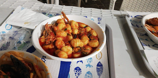 Read moreRistorante di pesce self service che fa anche da asporto con rapporto qualità/prezzo eccezionale. Si, tutto costa 6€ a porzione, tra l'altro le porzioni sono anche abbondanti, specie i primi. Sono andato diverse volte: il pesce è sempre fresco, il menù molto vario, con una decina di antipasti tra cui scegliere, 5 o 6 primi ed una decina di secondi (però sempre gli stessi, non ho trovato finora qualcosa di nuovo o di diverso). Punti deboli: non si trova parcheggio nelle immediate vicinanze nelle ore di punta. La fila, ora all'aperto è spesso lunga, come pure di solito c'è una sola cassa o due al massimo, quindi si fa parecchia fila se si sbaglia orario, pochi posti al chiuso. Ovviamente si ha a che fare con una consumazione stile fast food, quindi posate, bicchieri e piatti monouso e quindi non di certo un locale a lume di candela con i violinisti Tzigani a creare la giusta atmosfera. Comunque il rapporto qualità/prezzo è eccezionale ed una volta c'era anche la tagliatella all'astice che purtroppo da un pò non trovo più. Non ho mai assaggiato la frittura, comunque chi lo ha fatto l'ha trovata molto buona e...