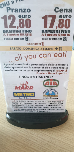 Read moreSono venuta qui a pranzo, finalmente, per la prima volta dopo anni in cui mi ripetevo di andarci. Locale molto ampio, giochi per bambini a disposizione, tanti coperti e tantissima gentilezza e cortesia da parte dei titolari. Servizio veloce e attento. Cibo di media qualità: ottimi ravioli, sushi buono ma con riso molto pesante, pollo alle mandorle con zero mandorle ma buoni spaghetti e porzioni abbondanti. Ampio menù con scelte variegate (si parla anche di cozze, arrosticini, lasagne), dolci a buffet compresi nel prezzo, e che prezzo: lo stesso dei primissimi all you can eat...prezzi che ormai non esistono più. Se volete mangiare in tranquillità, con ampia scelta, spendendo poco e non cercando la qualità gourmet, questo posto è perfetto! Ci tornerò...