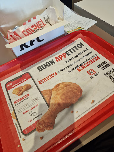 Read moreTutte, e dico TUTTE le volte che passo a mangiare in questo KFC rimango infastidito dalla lentezza nella gestione degli ordini. NON una volta dove, anche con poche persone in coda non ci si metta meno di 15 minuti (letteralmente ! se non di piu) per ordinare. Sabato poi è stata l'apoteosi. Lenti in cassa, mezzo locale "chiuso" (non veniva chieso ma imposto di utilizzare solo la parte sinistra del locale dove la gente consumava ai tavolini uno attaccato all'altro che rimanevano sporchi, con briciole e unti per i prossimi avventori senza essere puliti). Le bevande al distributore centrale erano calde (fosse Thè, Pepsi o altro tutte calde !), i bagni non sto nemmeno a commentarli... ma vedere l'nserviente entrare in uno di questi, uscirne ed immediatamente essere in cassa senza infilarsi guanti o altro... il locale mi risulta sempre molto frequentato, mi domando come mai non adeguare del giusto numero di personale per gestirlo al meglio. Considerando che dall'altra parte della strada c'è Burger King con praticissimi totem elettronici dove ordinare senza fare fila alla cassa e con personale ben...