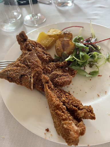 Sinceramente non so da dove cominciare. Abbiamo prenotato un tavolo per oggi a pranzo e ci viene detto che il ristorante fuori è pieno e ci fanno quindi accomodare dentro ( due tavoli fuori rimangono vuoti tutto il tempo …….ma va bhe) il resto del ristorante totalmente vuoto Ci sediamo all’ 1 e ci comunicano che i ravioli ( quindi due dei loro 4 o 5 primi ) non sono disponibili. Ordiniamo quindi un antipasto misto da dividere in 4 , 3 costolette e una guancia Dopo circa 40 min di attesa arriva finalmente l’antipasto ( composto da salumi, formaggi e due fiori fritti totalmente bruciati, immangiabili e non scherzo) Passa altro tempo e dei piatti nessuna traccia , al che all alba delle 2.30 chiediamo dove siano finiti i piatti. Dopo circa dieci minuti arrivano 2 cotolette e una guancia , la cameriera torna in cucina ed esce con l’ultimo piatto esordendo: ti hanno fritto solo l’osso, intanto mangia le patate che sono calde che la stiamo rifacendo …………. ( allego foto perché ha dell’incredibile! Sinceramente penso che abbiano rimpanato l’avanzo di qualcuno, oppure eravamo davvero su scherzi a parte, perché inspiegabile.) Al che ci alteriamo sia per l’attesa che per l’uscita di quel piatto dopo quasi due ore e ci viene risposto che è uscita così perché abbiamo messo FRETTA . Io in tutta sincerità non so cosa dire ….. Ad ogni modo anche le due cotolette arrivate erano veramente di legno mentre devo dire che la guancia era buona. Penso che queste siano persone che non sanno assolutamente nulla del mestiere, si sono improvvisate, non saprei…… ma una cosa così non l’ho mai vista in vita mia L’osso fritto passerà alla storia! Al momento del conto ci viene pure detto: spero tutto a posto! Roba da matti Non abbiamo nemmeno bevuto il caffè e siamo andati a mangiare un gelato, peccato perché la location...