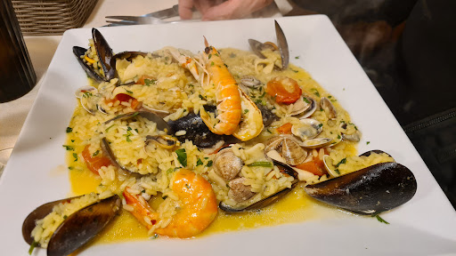 Read moreArrivato per caso nel ristorante per un pranzo veloce, dopo una telefonata nonostante l'ora venivo accolto dal titolare molto gentile, cercavo qualcosa di economico e veloce, cosa ottenuta! Il locale è ampio con ampio parcheggio e tavoli posti anche al di fuori del locale, non è un ristorante da menù ricercati ma c'è ampia scelta, l'ambiente non è raffinato ma nemmeno brutto, il menu varia dal menù da lavoro con primo, secondo vino/acqua e caffè per 13€, un menù fisso del giorno a 20€ o un menù a scelta, con prezzi diversi e più alti a seconda di cosa si ordina, come sempre il mio giudizio sarà sul menù scelto, quello da 20€ e non parlerò delle portate non mangiate, nel mio caso assaggi di mare, una porzione talmente abbondante che accompagnata dal pane fritto delizioso aveva già soddisfatto la mia fame, c'era veramente di tutto, dalle cozze alle vongole ai pescetti fritti ai totani acciughe salmone a fette, polipetti più crostini e insalatina e pomodorini per rinfrescare il palato, piatto abbondante e ben bilanciato, il tutto veniva accompagnato da un quartino di vino bianco frizzante, dopo gli assaggi arrivava il primo, spaghetti allo scoglio, con abbondante presenza di frutti di mare e un buon sugo, personalmente il primo l'ho trovato meno gradevole per lo spaghetto troppo al dente, in ogni caso mangiabile e abbondante, il pasto finiva con il caffè. Che dire per 20€ non si può chiedere di più, rimane sempre un pranzo a basso costo ma ben abbondante, mi sento di consigliarlo per chi cerca di spendere poco più di un pranzo da lavoro classico da 13€, servizio veloce e personale gentile visto che era un fine turno di mattina. Il locale ha le caratteristiche adatte per chi deve organizzare matrimonio, feste e cene/pranzi numerosi, la sala è molto grande e accogliente, un tavolo libero lo si trova sempre. Non è un ristorante gourmet ma ci si mangia bene per quel che si spende! Spendendo di più si sceglie quel che si vuole a quel punto si arriva a spendere intorno ai 35€ scegliendo quel che...