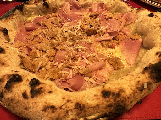 Read moreQuesta pizzeria è da poco entrata nel gotha delle migliori Pizze d'Italia, ciò nonostante offre un prodotto già maturo, e soprattutto sa dove vuole andare. La pizza è frutto di una continua ricerca sulle materie prime e sugli accostamenti, i menu sono stagionali e riflettono le tipicità non solo dell'area vesuviana, ma anche della intera Campania e qualche volta del Sud Italia. Così sulla pizza si trovano i pomodorini del piennolo, il broccolo aprilatico, le alici di Cetara, l'olio EVO cilentano, il tonno alalunga di Palinuro, il maialino nero di Caserta, ma anche il pistacchio di Bronte, il pomodorino datterino. Ma la vera qualità di questa pizza è nell'impasto, soffice e digeribile, si scioglie in bocca. il cornicione è pronunciato e ben alveolato. Ho provato dapprima una margherita, per poter valutare la mano, e poi in una seconda visita una pizza gourmet, e le ho trovate ottime, l'unica pecca, forse, è che entrambe le volte il topping era un po' liquido. Ma comunque parliamo di una pizza di alto livello. Il servizio in sala è curato, tuttavia, un po come tutte le pizzerie di alto livello, se andate nei giorni e negli orari di punta, armatevi di pazienza, anche perché con un solo forno fa anche pizza da asporto. Come dessert vengono offerti dolci al cucchiaio (in barattolo) di Casa Infante. Un suggerimento, provate la pizza fritta ed al forno, una...