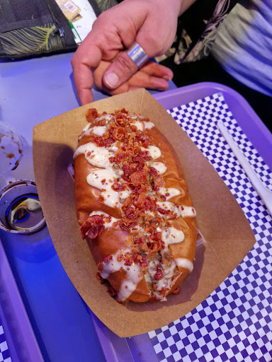 Purple burger è un piccolo pub di proprietà di un giovane imprenditore sangiuseppese, che ha deciso di portare nel vesuviano l'idea del fast-food stile americano. Appena entrati si viene assorbiti da luci al led colorate e un arredamento che strizza l'occhio ai diner statunitensi stile anni '50, e i menù sono affissi in alto, esattamente dietro al bancone, così come era, ed è, d'uso negli Usa. Quello che si respira nel piccolo, ma curato pub, è una forte identità: tutto, dalla scelta della carne, agli antipasti, alla cottura e composizione dei panini, è curato dal giovane proprietario, che ha preferito staccarsi dalla solita idea imprenditoriale e proporre un prodotto che nella provincia di Napoli è veramente difficile da trovare. Gli incartamenti dei panini, e la loro composizione, sono studiati in modo da rispettare i crismi del fast diner statunitense, tanto che i panini vengono serviti al vassoio, accompagnati da un leggero velo di carta che copre il panino solo fino a metà. Lo scopo, è portare il cliente negli states, fargli assaggiare un panino diverso, semplice ma curato e genuino, lontano da quello che si assaggia nelle zone e per questo meritevole di attenzione. Assaggiate il suo cheese burger e il fantastico cheesesteak, i suoi antipasti fatti a mano (con menzione speciale alle polpette di pulled pork e agli anelli di cipolla), provate il panino con il pollo fritto, fatto a mano anch'esso... Insomma, perdetevi per una mezz'oretta in questo piccolo gioiello del sangiuseppese, e state sicuri che...