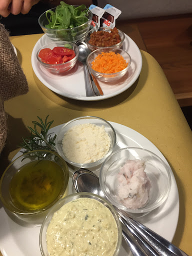 Prenotiamo al telefono per il secondo turno per 5 persone.ci inviano il menu per email da scaricare e consultare : per indicazioni covid ci spiegano non dispingono di menu al tavolo.arriviamo alle 20.45.ci fanno accomodare fuori dal locale (sotto la pioggia) perchè il tavolo non è ancora sanificato (quelli del turno prima erano ancora seduti) e non si puo attendere al banco per linee guide covid (ok mi sembra giusto).all' esterno altre persone che attendono.arriva un gruppo di una decina di persone che entra attende al banco un po prima di prendere posto.non ci pare un comportamento corretto rispetto a noi fatti accomodare fuori e gli altri che gia stavano attendendo.arriva altra gente entra si accomoda o viene fatta attendere fuori e comunque poi chiamata prima di noi.chiediamo spiegazioni : dobbiamo aspettare fuori che ci chiamino.vabbè mi sento molto cliente di serie b.noi intanto sempre fuori. A me questo aspetto di disorganizzazione nell'accogliere la clientela non è piaciuto. Finalmente ci chiamano ben oltre le 21.tavolo apparecchiato per 4 (noi prenotato per 5)e menu delle birre sul tavolo : ma come?le birre si e il resto no?..una penna ed un foglietto per scrivere il nome di uno dei commensali...la penna sará igienizzata?perche penna si e menú no fa un pó sorridere.Tigelle buone,con tre menu (15eu l uno)abbiamo mangiato in 4adulti ed un bambino. Personale al.momento del servizio professionale e alla mano. Vedremo una prossima...