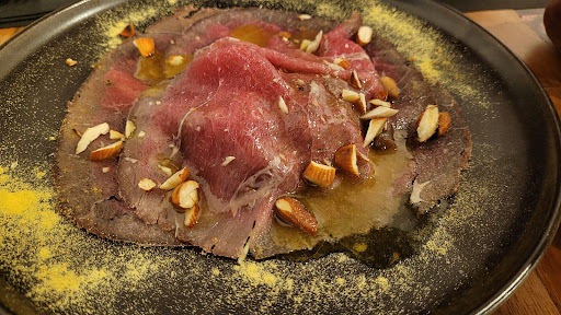 Read moreEsperienza davvero eccezionale, locale accogliente, personale davvero gentile e attento alle esigenze degli avventori. La qualità del cibo è di qualità con scelta accurata dei prodotti, nella maggior parte a chilometri zero. Una buona selezione di vini con una discreta carta dei vini, sia locali che non. La location è nel centro storico del paese, ben tenuto, curato e pulito. Abbiamo preso due antipasti, un carpaccio di manzo su letto di rucola con granella di mandorle e noci, e una caprese con mozzarella di bufala su letto di pomodorini inseriti al centro di un tarallo tipico locale e crema di basilico. Due secondi: baccalà cotto a bassa temperatura, su vellutata di pistacchi con insalata di cavolfiore e crumble di taralli tipici locali. Per i bambini abbiamo optato per cotoletta e patatine, con successiva frittatine di spaghetti. Ottimo rapporto...