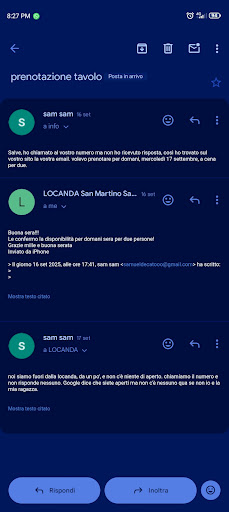 Read moreavevo intenzione di andare alla Locanda San Martino per l'anniversario con la mia ragazza viste le buone recensioni nonostante la distanza e la strada tortuosa per arrivarci da casa mia (vallefoglia). immaginando servisse la prenotazione chiamo il giorno prima, ma non risponde nessuno. aprendo il loro sito trovo il loro indirizzo e-mail, al quale scrivo chiedendo la disponibilità. ricevo una risposta di conferma e disponibilità di un tavolo per due persone per "domani" (conversazione del 16.09.2025, prenotazione per il 17.09.2025). il giorno dopo ci rechiamo dopo un'ora e un quarto di viaggio in macchina. arriviamo alle 21.45, entusiasti di essere FINALMENTE arrivati. ciò che troviamo a San Lorenzo in Campo (anche se la Locanda si trova più precisamente nel borghetto di Montalfoglio) è una locanda chiusa, alle 21.45 di sera, pur avendo prenotato la sera precedente. apro Google per controllare se mi fossi sbagliato sugli orari, constatando però di avere ragione data la scritta "aperto" e addirittura con chiusura alle 2.00 del mattino. chiamo e il telefono squilla all'interno della Locanda ma senza alcuna risposta, essendo tutto chiuso e spento. Morale della storia: abbiamo prenotato per l'anniversario in anticipo, ricevendo conferma, e ci siamo trovati a un'ora e passa da casa senza posto per cenare. Mancanza di...