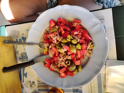 Tenendo conto che si tratta di un lido e quindi di una struttura di tipo balneare, è alquanto curata e con ottimo servizio al tavolo. Fanno ristorazione a gestione familiare con menù del giorno o à la carte. È possibile trovare insalate miste, i piatti a base di frutta. In alternativa, piatti tipici della cucina calabrese come ad esempio spaghetti con le alici, le polpette di tonno o la pasta fatta in casa. Su richiesta fanno anche una ottima panzanella fresca, polpette di melanzane e fritture varia di pesce e molto altro per ristorarsi dalla calura della spiaggia. Ampia terrazza coperta da cui godere anche un bel panorama con 60 posti. Il bar sforna cornetti più volte al giorno con crema, amarena, nutella o marmellata di albicocche. Per quello che concerne i gelati, è quello di tipo artigianale, ma la vera specialità da provare assolutamente è la granita al fico d’India, altrimenti ci sono granite al limone, fragole, caffè e mandorla. Inoltre, d'estate è una vera garanzia in quanto è perennemente aperto anche a stagione inoltrata, contrariamente a tutte le altre attività simili dei dintorni. Una nota negativa la devo fare al bagno riservato alla clientela: non si chiude con lucchetto, non c'è acqua e non c'è...