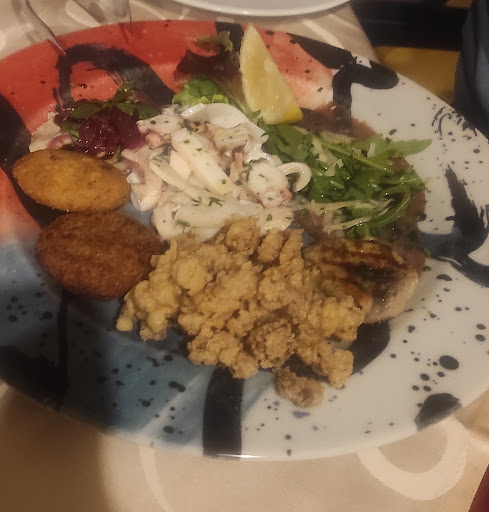 Read morePrezzi esorbitanti, assolutamente esagerati per il luogo, la qualità del cibo, le porzioni. Questo piattino è l'antipasto misto da 22€, peccato che sotto questo piatto, sul menu fossero elencate, insieme alle altre cose, anche cozze e vongole, di cui però non c'era traccia. Alla richiesta di spiegazioni, la risposta è stata che, anche se le avessero portate, sarebbero state "giusto un decoro, due di conto". E hanno continuato a ripetere questa cosa, senza poi portarle. Quindi perché scrivere nel menu qualcosa che dovrebbe essere parte integrante del piatto e considerato invece alla stregua della lattuga usata per "abbellire", se non per imbrogliare i clienti? Personale scorretto, posto spartano essendo un lido, cibo nella media, quantità ridotte, da non giustificare assolutamente il costo. Ci siamo alzati contrariati tanto da non continuare la cena. Esperienza pessima, non vi faremo certo una...