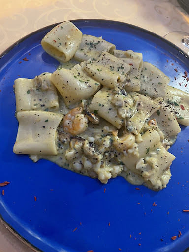 Abbiamo avuto il piacere di assaggiare vari piatti, e tutti sono stati cucinati con prodotti freschi e di alta qualità. I paccheri alla carbonara di mare erano un'esperienza culinaria straordinaria. La combinazione tra la ricca salsa carbonara e i frutti di mare freschi ha creato un sapore unico e delizioso. Ogni boccone era una festa per il palato.