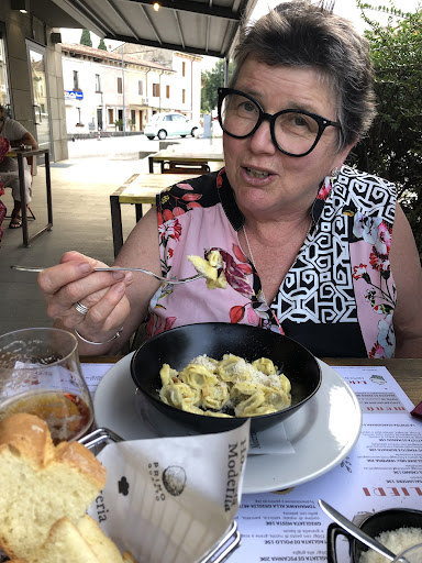 We arrived at Hosteria after a short walk from our accomodation. We were presented with a menu in Italian but when the staff member realised we had limited Italian they sent out a staff member who could speak English. This was kind and thoughtful. After much discussion and a chat to the chef a Gorgonzola and walnut tortellini was suggested. This was prepared specially for us as pasta was only on the menu at lunchtime. We complemented the pasta with a prawn and burrata salad. To drink we had birra Rosa, still water and wine. A wonderful experience with delicious food. We...