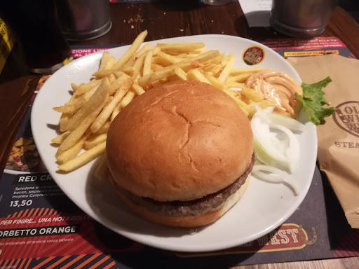 Read moreUsciti dal cinema,decidiamo di cenare qui...Ci fanno accomodare velocemente ad un tavolo con panche scomodissime e schienale verticale...Veloci nell'ordinazione,ma quando arrivano le pietanze nessuno si è preoccupato di portarci le posate...Dobbiamo chiamare ripetutamente le ragazze che ci passano velocissime vicino,senza mai guardare il tavolo...Finalmente,con la rib eye ottima diventata purtroppo fredda,abbiamo soddisfazione...I burritos non hanno la panna acida descritta nel menú: richiederla e ottenerla vuol dire dover aspettare 10 minuti....Ovviamente anche questi si son raffreddati!Il dessert ordinato all'inizio da Marina,specificando di riceverlo dopo il burrito,arriva mentre aspettiamo la panna acida: ovviamente torna indietro,salvo non arrivare più quando lo richiediamo...!!! Per concludere,il POS non funziona: pago io per tutti,con i contanti che tengo sempre a disposizione...!!!Spesa di circa 25€ a cranio...Ormai standard anche in normale pizzeria...! Purtroppo la voce servizio è genericamente quella che abbassa le votazioni: ragazzi giovani che sfangano il mensile facendo un lavoro che non piace,senza una direzione di lavoro capace di istruirli e inquadrarli...Ormai questi locali badano solo a fare cassa con standard di servizio basso e...