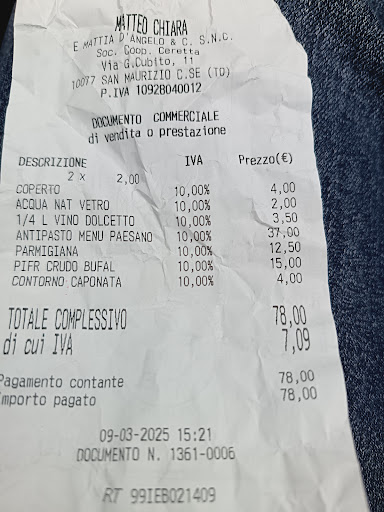 Consigliato dal albergo dove alloggiavo, sono "approdato" in questa originale trattoria Piemontese. Un po' fuori mano e passarci per caso è quasi impossibile. Ampio parcheggio ed ingresso con le luminarie come una festa paesana di altri tempi. Prima di entrare un campo da boccie (credo dismesso)"con delle piccole porte da calcio per neonati ed un palla buttata lì. La musica si sente fin da fuori e prosegue anche all'interno in modo importante, ma non fastidioso.... erano anni che nn mangiavo al suono della musica della Carra'! Trattoria semplice, di altri tempi, informale, arredamento semplice, stufa a pellet per riscaldare, tovaglie a quadretti bianchi e rossi, tavoli in metallo con ripiano in legno, sedie in plastica e (rigorosamente) tovagliolo di carta. Mi sembrava di essere tornato indietro di 50 anni, quando mio padre mi portava a mangiare nelle trattorie durante le uscite del weekend. Si mangia sia pizza (forno a legna) che carne. Personale gentilece preparatissimo. I cani per me posso entrare. I piatti sono spesso tipici piemontesi. Io ho scelto la tartar di carne "Piemontese " servita come antipasto era di gran qualità, come gli agnolotti con il ragù fatto come quello di casa, solo con un po' troppo ricco di condimento. Ottimo. Buona la scelta delle birre. Trattoria ideale per tutti, famiglie, gruppi di amici, ecc. ma non adatto a chi cerca il ristorante stellato. Prezzo,... 29€ .... secondo me ben spesi e assicuro che ci ritornerò, magari con amici per fare una sana cena (come uma volta) di baldoria e...