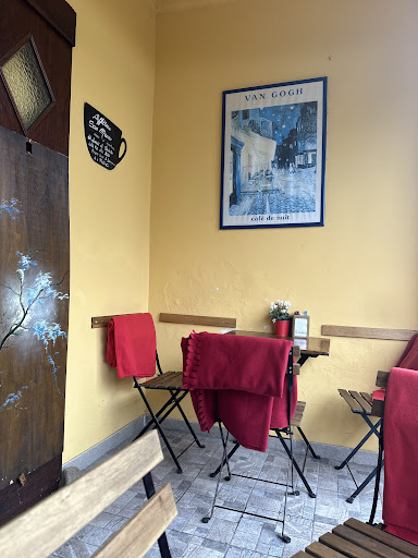 Went in for a coffee on the outside terrasse on a Saturday mid morning. Very busy and no tables, however they found us a place. Service was fine, coffee was great. The dog barking was not pleasant at all as people did not try...