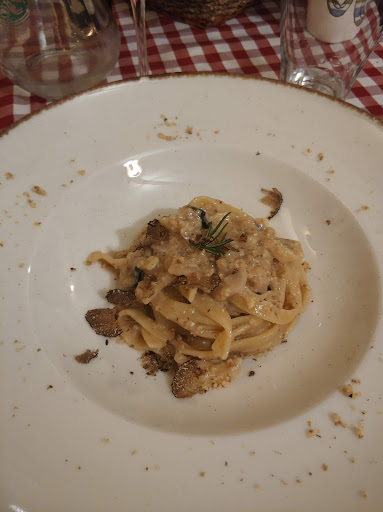 Read morePer la prima volta oggi ho avuto occasione di pranzare alla Tavernetta. Uno di quei posti in cui entri e immediatamente - sarà per il camino scoppiettante, sarà per la calorosità dell'accoglienza del personale di sala, sarà per l'arredamento curatissimo nei dettagli, ma al contempo informale - ti senti a casa. E' stata un'esperienza molto intima in quanto, all'orario in cui siamo stati io e la mia compagna, eravamo gli unici avventori. Ciò ci ha consentito di avere una lunga, piacevolissima chiacchierata con il signor Giovanni, il titolare. Eccezionali i primi piatti (abbiamo assaggiato i paccheri alla genovese e le fettuccine lardo e noci) e altrettanto la selezione di antipasti caldi, oltre davvero non siamo riusciti ad andare! Ma è, a mio modestissimo avviso, nel fattore umano il vero punto di forza di questo locale. Il signor Giovanni è davvero in grado di trasmettere ai suoi ospiti la passione che ci mette nella conduzione della tavernetta: dalle spiegazioni che accompagnavano i piatti traspariva un amore sincero per questo lavoro, nonché una grande professionalità. In sintesi, credo che trovare posti in cui mangiare bene non sia poi difficile; trovare posti in cui oltre al corpo riesci a nutrire anche la mente, in cui vivere una esperienza gastronomica sincera invece è tutt'altro che semplice. Oggi onestamente alla Tavernetta ho provato...