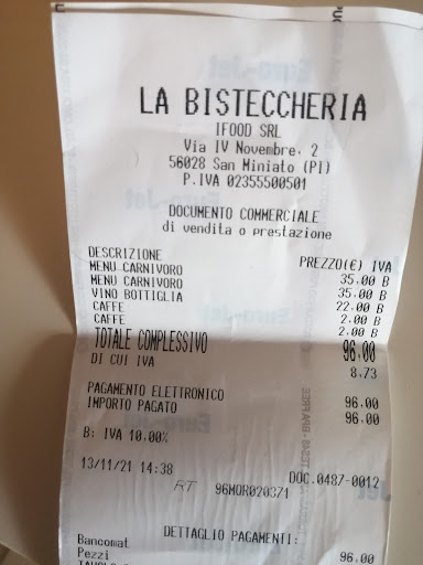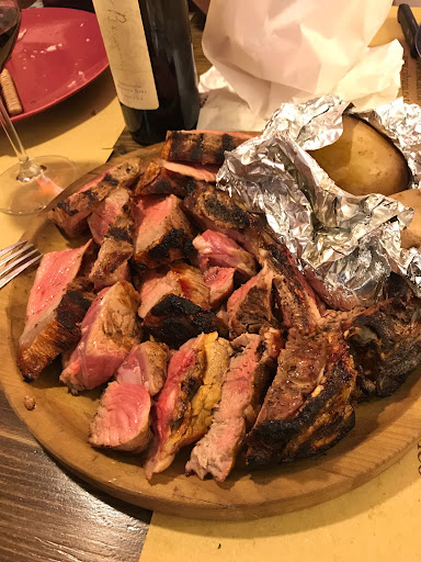 Read moreNon do 5 stelle perché non ho particolare esperienza in fatto di Fiorentina. In ogni caso abbiamo letto le recensioni, eravamo di passaggio, per fortuna c'era posto e ci siamo fermati. L'antipasto era abbondante e buono. La carne tenera e gustosa. Il vino della casa, servito solo in bottiglia era buono e comunque apprezzabile che il vino esca solo dalla bottiglia e si possa vederne il contenuto. Purtroppo si sa bene che il vino della casa non sempre è all'altezza... In questo caso si era sicuri di cosa si beveva. Mi dispiace di non aver fatto foto ai piatti ma eravamo troppo affamati. X il bimbo abbiamo preso l'hamburger ed era tenerissimo. Le patate al cartoccio gustose. Non patate lesse o bollite come ha scritto qualcun altro ma al cartoccio, cotte nella stagnola con gli aromi dentro. L'antipasto, il menù era il terzo della lista, aveva una tartar con pomodorini e ricotta grattugiata, del prosciutto al coltello e del lardo, crostini di pane, pecorino... Era davvero abbondante... Nel complesso contenti, il personale gentile e disponibile coi bimbi. Ah in fondo pure il dolce, 8 fette di torta... Siamo usciti rotolando... Totale 104 euro compresa la bottiglia di vino intera, acqua...