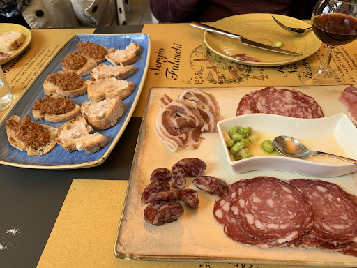 Macelleria Sergio Falaschi is a wonderful butcher shop in San Minato. They are long time Slow Food supporters. They have great meat and homemade sausage for sale, and a restaurant in the back of the store serving delicious food. It's very traditional in the sense that they offer only a few dishes that change with the season and day. There is a view over the hills from the covered terrace (if you want to sit on the terrace be sure to call in advance). Your lunch will be a real experience, do what we did, try everything! You won't be...