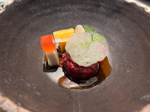 The presentation of each course was divine. The taste... Less so. Several courses were a strange conglomerate of misaligned ingredients. Taken separately, each were tasty. Together - vile. It's really unfortunate, because the food looked fabulous. But in several cases one component was fine (buratta) another component was fine (tomato soup) - but they did nothing together to complement each other. Several courses were heavy handed on the salt, and could have used more acid to bring out the flavor. The focaccia was entirely too greasy to the point we couldn't finish it, and some desserts were good, others tasted like poor approximations of health food.