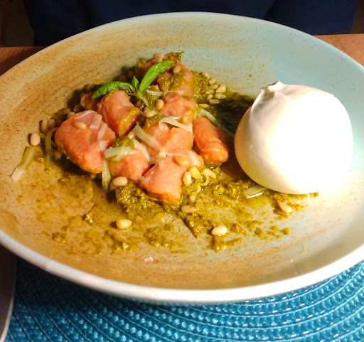 Read moreReview turned into open love letter😘Truly 1 of the best, if not the best restaurant experience we've had in Italy. Have you ever had food & service so good that you left amazed & confused? We showed up without a reservation, The owner is sitting outside, having a drink on a beautiful outside seating area. He introduces himself and asks if we want to sit inside or outside. We say inside, and there's a lovely table for four that he turns into a table for three in less than a minute. Two out of three of us are vegetarian. The owner says no problem. He offers to do the dishes without meat. They left the meat off the purple Gnocchi pistachio pesto dish & the speck off the gorgonzola walnut dish. THOSE DISHES😍 WOW! We we're truly overjoyed eating those main courses.We also had the potato meatless "meatball" as a starter and a Gnocchi pomodoro for the kid, both really delicious. What about dessert? Also delicious😋 A homemade tiramisu, that tasted like it was made with love & care and a nuttela cookie tart that was crunchy & soft & chocolaty in the middle. Honestly, I can't say enough good things about this restaurant. Owner & staff; kind, caring & overall top notch. Atmosphere; lovely inside & outside seating, chill music in the...