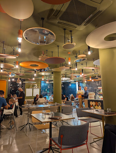 Read moreSono stato in questa pizzeria sabato sera ore 20:15, nonostante ciò il locale non era affollato ed è stato facile accomodarsi in uno dei molti tavoli liberi. Il locale si presenta davvero bene, moderno, nuovo. Esclusivo il soffitto composto da molti tavoli capovolti e pieno di specchi, che creano una bell’atmosfera. Abbiamo ordinato una mamma montanara come antipasto e due pizze (margherita e capricciosa) e una birra alla spina. La montanara è arrivata dopo circa 15 minuti, era davvero bella all’esterno ma all’interno era CRUDA. Facciamo notare il tutto alla cameriera che ci sostituisce la montanara. La seconda montanara non sortisce effetto diverso dalla prima, appena aperta si ripropone CRUDA. Lo staff nemmeno ci credeva ma non potendo negare l’evidenza si scusa (segnalando un problema alla friggitrice) portandoci un tris di fritti. Il tris era buono, forse sarà stata poi la fame chissà. Eccoci alle pizze, riceviamo prima la margherita e dopo poco la capricciosa. Entrambe si presentano bene anche se un po’ giallognole, colpa della farina di semola utilizzata (confermata dal cameriere a fine serata). Le pizze nel complesso avevano due difetti: Gli ingredienti e la pizza erano troppo staccati, non erano amalgamati alla pizza sembrava di mangiare una pizza bianca con sopra gli ingredienti. L’impasto doveva lievitare di più.