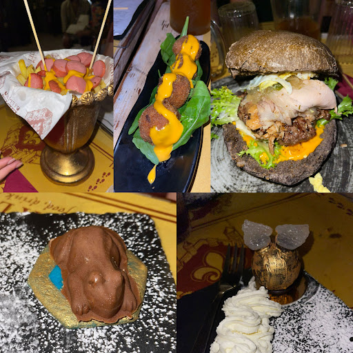 Read moreSerata inaspettatamente positiva, nonostante i 100km fatti, qualche perplessità in partenza c' era ma, siamo stati ripagati da una bella serata. Locale molto curato, pieno di dettagli e angoli che richiamano tanti momenti legati alla saga, accogliente e con uno spazio esterno ricco di scorci a tema che preparano gli ospiti alla serata. Ci sono piaciuti tantissimo l' ambientazione e avendone parlato a fine serata con il propietario ci è stato chiaro la passione e l' impegno con il quale tutto è stato concepito, complimenti. Secondo elogio va allo spettacolo che durante la cena intrattiene i commensali con il mitico Severus Piton o meglio ( Alessandro ) a cui vanno i nostri complimenti per la performance, divertente e con i tempi giusti, da attore consumato, raramente ho visto una persona riuscire a non ridere anche se ci abbiamo provato e non poco, rimanendo fedele al personaggio a cui per altro assomiglia non poco, un grande. Terzo elogio per ultimo ma non per questo il meno rilevante, si è mangiato degli ottimi panini, eravamo in 11 e tutti sono rimasti contenti avendo preso cose differenti mi sembra una buona base per ritornare ad asaggiarne un' altro, una mensione personale agli special ( nel mio caso La Fenice di Silente ) una stella in più davvero ottimo e servito con mia sorpresa in maniera speciale. Dovendo trovare qualcosa che non ci ha entusiasmato, ma sono gusti, la Burro Birra, essendo analcolica e particolare è da assaggiare ma non per tutti, I nostri complimenti vanno in ogni caso a tutto lo Staff, molto apprezzata la possibilità di comperare qualche Gadget per i super amanti della serie e anche per chi desidera solo un piccolo ricordo della serata. Per finire stiamo decidendo quando ritornarci per la serata con cena spettacolo del Sabato, per assaggiare nuovi panini e godere di una compagnia allargata che ci porti ancora una volta, anche se per poco, nel mondo di Harry Potter e della magia...
