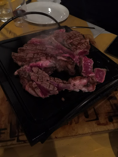 Read moreCena con amici, ristorante molto semplice. La loro specialità, la carne, ottima, 2.2 kg di fiorentina davvero buona e saporita. Oltre questo abbiamo preso due carpacci (molto buoni), un tagliere di antipasti (scarso per 4 persone), scamorza affumicata (molto buona), contorni (anche questi scarsi), vino, acqua, caffè e dolce. Esperienza positiva, unica problematica è stato il servizio estremamente frettoloso. Siamo arrivati prima delle 9 e praticamente dopo meno di un'ora avevamo già finito di mangiare. Mentre mangiavamo l'antipasto volevamo ordinare altre cose ma ci è stato risposto che era praticamente già pronta la carne, quindi abbiamo desistito. Camerieri comunque gentili ma il servizio si può migiorare. Forse c'è stata qualche incomprensione sugli antipasti perchè un tagliere del genere per 4 persone è scarso. Anche i contorni, ad esempio ci sono stati portati letteralmente 5 pezzi di patate sotto la coppa per 4 persone. Alla cassa qualche problema tecnico per il pagamento tramite carta. Conto finale 40 euro a testa, ci può stare. Posto...