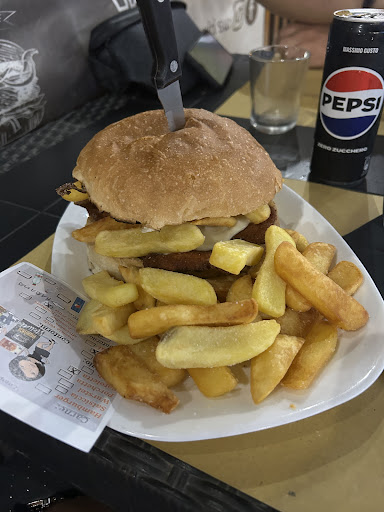 Read moreAttirato da buone recensioni, decido di visitare il posto preso da una voglia di hamburger.. Appena arrivo chiedo alla cameriera (giovane con zero esperienza) come sono le patate americane e non mi sa rispondere... Dopo un consulto in cucina mi risponde che sono quelle con il taglio rotondo ma non ci sono... Allora decido di ordinare come antipasto delle bruschette e delle patatine fritte classiche che devo dire sfiziose e fatte bene.L unica pecca che ho chiesto le bustine di salsa e la ragazza non trovandole negli appositi cartoni, ha pensato bene di portarmi le confezioni utilizzate in cucina. Veniamo al punto dolente il panino.... Ho ordinato un tricolore fatto con crudo e stracciatella di bufala che non ho potuto finire per quanto salato era il crudo.... (la proprietaria mi ha parlato di prosciutto di Parma... Ma ci credo pochissimo avendo avuta esperienza come salumiere…, sembrava più un nostrano.) Pagato e andato via abbastanza deluso... peccato le giornate storte possono capitare... Aggiornamento al 14/09 in risposta al titolare.... Mi dispiace ma di salumi ne capisco abbastanza e il panino si trova tutto nel piatto come vede nella foto... Abbiate la compiacenza di prendere la parte buona e critica del feedback ... Serve per aiutare a migliorare e crescere......