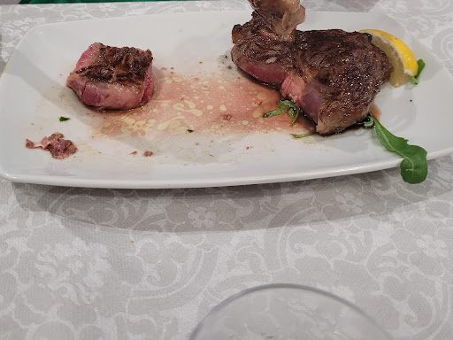 Read moreBuono l'antipasto misto caldo, ma la cottura della bistecca lasciava un pò a desiderare. Servizio molto lento, gli addetti erano totalmente impallati dal fatto che il locale era pieno e la cucina faticava a gestire gli ordini secondo il loro arrivo. Risultato i tavoli intorno a noi che erano arrivati poco dopo hanno mangiato 2 portate e il dolce e se ne sono andati nello stesso tempo che noi abbiamo atteso per la bistecca (preso solo antipasto e bistecca / arrosto misto). Quando abbiamo chiesto se c'erano stati problemi col nostro ordine abbiamo avuto una risposta abbastanza sgarbata, ma subito dopo la nostra carne è stata messa sulla brace, evidentemente il nostro ordine era stato dimenticato. Avremmo preferito ascoltare delle scuse invece di ricevere un "noi serviamo secondo l'ordine di arrivo", quando poi chi stava intorno a noi ed era arrivato dopo aveva pure digerito il pasto. Il conto nella media, purtroppo alta della zona di san...