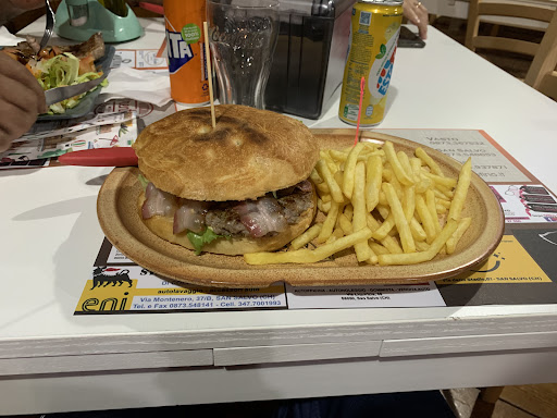 Locale informale, proprietario serio e preciso, ottima scelta delle materie prime e prezzi giusti, carni saporite e gustose, ottimo listino pieno di varianti e tipologie dall hamburger al semplice panino, passando per focaccie piadine e buona scelta di fritti! Pubblicherò il suo menù perchè è molto gradito l'asporto. Non dò 5 stelle perchè è arrivato il momento di rinnovare ma solo per quello!! Bravi ragazzi...
