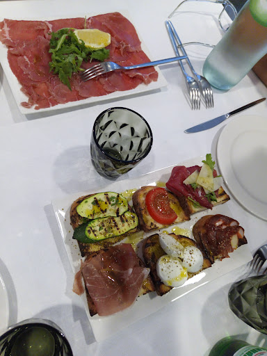 We shared 2 starters, the carpaccio of beef and the roast smoked cheese with prosciutto, both excellent. Followed up with lemon pasta and ravioli with pistachio cream, truly excellent. Bottle of wine recommended by the owner, and some local Amaro (suffice to say you should try some but not too much) all for €65, blooming bargain.