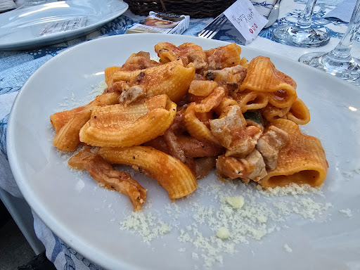 Read moreAvevo un bel ricordo di questo ristorante......che peccato.....prenotato per due all'arrivo c'era il piazzale pieno....chiediamo di poter mangiare all'interno visto che si vedevano dall'esterno dei tavoli con clienti.....ma chi ci ha accolto ci dice che non è possibile perché servono all'esterno 🤨.la cosa ci lascia un po' perplessi ma comunque accettiamo.Portato il menù ci accorgiamo che le linguine allo scoglio piatto che ci aveva fatto tornare svariate volte prima del periodo covid sono assenti dall'elenco......pazienza....optiamo per una pizza e poi pensavamo di prendere il fritto di calamari gamberi e verdure in un secondo momento.Arrivano le pizze ma aimé la parte della base è molto annerita.....pazienza.Intanto arrivano due fritti al tavolo di fianco e i due commensali notano che di gamberi in realtà c'è n'è uno solo a piatto....e a mio parere i calamari sembravano un po' anemici e non croccanti....per cui evitiamo di ordinarli.Alla fine andando a chiedere il conto alla cassa all'interno e notiamo che ci sono almeno tre tavoli con almeno tre o quattro commensali ognuno.....menomale che servivano solo fuori......un...