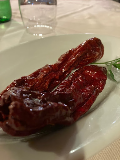 Mein Essen war lecker, ich habe mich nur als Einzelgast nicht so wohl gefühlt. Das kann passieren, kenne ich aber auch anders. Der Service war mir gegenüber etwas… reserviert, aber nicht unfreundlich. Der „Gruß aus der Küche“ wurde zB kommentarlos auf den Tisch gestellt - da hätte ein halber Satz „das ist Brot mit Käse vom Bauern nebenan“ (oder so) ja nicht geschadet. Ansonsten waren die Peperoni Cruschi sehr lecker und sollten in der Gegend auf jeden Fall probiert werden! Als Secondo hatte ich Pilze mit Käse - als Vegetarier war ich froh, mal einen Gang ohne Fleisch zu erwischen, was also sehr löblich ist. Aber: es ist wirklich seeehr viel Käse - danach war ich platt. Ich hätte den Secondo aber auch als Vorspeise haben können (wiederum sehr nett vom Service, das vorzuschlagen), aber Käse zu Beginn eines Essens klang nicht nach einer guten Idee :) Also insgesamt kein schlechter Abend, aber im Vergleich zu den anderen in den Tagen… aber: mein BnB-Host hat sehr von ihnen geschwärmt, die anderen Gäste wirkten zufrieden und die Pizzen sahen auch wirklich lecker aus! Preise waren auch ok. Also hätte ich 3 Sterne wegen des Gefühls gegeben, mache daraus aber...