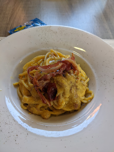Read morePiacevole scoperta. Lo consiglio e tornerò sicuramente. Provo a chiamare alle 14:00 per sapere se era possibile pranzare e mi salvano il pranzo. Il ragazzo che credo "gestisca" il locale è stato molto gentile ed alla mano. Ho chisto un primo abbondante e sono stato accontentato. Tagliatelle al ragu di papera. (Sugo fuori menu del giorno) Buonissime. Poi cotoletta e patate fritte con acqua gassata e una coca zero. (Oltre al pane anche focaccia fatta da loro) E per chiudere in bellezza una deliziosa e anche abbondante crema catalana. Totale 27,50 ma scontato a 25 euro; ma come detto anche a lui; per la cortesia e per la bontà dei piatti avrei pagato anche di più. (Ci si rivede...