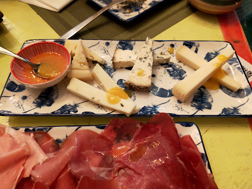 Bel locale, pulito ed accogliente, con uno stile tra l'industrial e l'aspetto da bottega, con tavoloni in asse a vista come per il lampadario; molto curato nei dettagli come le maioliche o le luci a cordino. Abbiamo preso tutti aperitivo e taglieri di salumi misti e formaggio a centro tavolo. Sul primo piatto che ci hanno portato (anche i piatti molto belli) c'era una bruschetta con salicornia un'altra bruschetta con patè di olive, un pezzo di pizza imbottita rustica molto saporita, delle olive, melanzane grigliate o in alternativa friariello o zucchine trifolate, poi due terrine una purè di patate tipo gateau, poi un'altra terrina con lasagna di crema di broccoletti. Gli affettati erano molto variegati e l'altro tagliere con i formaggi misti accompagnate da una terrina con la marmellata. E cestini col pane. Tutto molto buono, sfizioso e da provare. Una buona gamma anche da bere. La proprietaria molto premurosa e cortese. Prezzi contenuti....