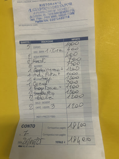 Read moreHo prenotato un tavolo per due persone, siamo arrivati leggermente in anticipo ed il personale è stato comunque cordiale nel farci accomodare allo stesso modo. Location curata soprattutto nel giardino del ristorante, dove c'erano tutti i tavoli prenotati. Posto centrale e facile da raggiungere in auto. Unica puntualizzazione, bisogna attraversare un piccolo corridoio che unisce il giardino con la sala dell'ingresso principale, ed in questo corridoio sono presenti frigoriferi del personale, attrezzature e locali di cucina. Abbiamo ordinato due pizze, una porzione di patatine, un'acqua naturale ed infine una coca cola artigianale. Le patatine erano leggermente crude e sfortunatamente accompagnate da una sola bustina di salsa ketchup. Mai visto prima nulla del genere. Per due persone, la porzione era soddisfacente, ma nel momento in cui abbiamo chiesto un supplemento di salse, non ci sono arrivate per tempo, di fatti, quando ci sono state portate, ormai la porzione era letteralmente quasi terminata. Abbiamo atteso alcune decine di minuti e sono arrivate le pizze. Impasto buono e pizza gradevole, peccato però per i condimenti, assolutamente non all'altezza della descrizione riferita nel menù e soprattutto per il prezzo indicato, dato che, era tra le "pizze gourmet". Il costo era elevatissimo per il prodotto arrivato a tavola. Non meritevole. Al momento di avere il conto abbiamo atteso quasi 30 minuti dopo aver finito la nostra cena. Un'attesa leggermente eccessiva, anche perché non sembrava ci fosse una eccessiva presenza di clientela in cassa. Decorsi i circa 30 minuti, la cameriera ci ha gentilmente riferito che il conto fosse pronto in cassa e potevamo recarci per il pagamento. Una volta arrivati, il responsabile della cassa, ci ha mostrato una sorta di ricevuta con su scritto semplicemente l'importo finale, ovvero 37€. Nel momento in cui ho passato le banconote (40€) al responsabile, esso mi chiede gentilmente di attendere per andare a prendere il resto, nonché avesse la cassa proprio davanti a lui. Attendiamo almeno 5/6 minuti, abbastanza imbarazzante, dopodiché arriva e, con un fare a dir poco indisponente, mi dice che non poteva fare altrimenti che darmi il resto interamente di sole monete da 10 centesimi. Assurdo a mio avviso. Scortese ed arrogante. Voleva quasi a tutti i costi che il resto fosse lasciato come mancia. Nonostante questo misero gesto, nell'uscire mi richiama e mi dice con un tono altrettanto arrogante: "questa non la vuoi?!" Riferendosi ovviamente alla ricevuta. Io, che nonostante tutto, rimasto impassibile e sempre gentile, mi avvicino, prendo la nostra ricevuta ed usciamo. Non ritengo opportuno che ci possa essere una nuova occasione di tornare in...