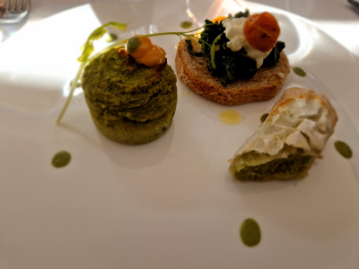 Poi un po' penalizzato per chi volesse mangiare fuori... Magari per i miei gusti c'erano troppi insetti... di cui CALABRONI ENORMI ,io premetto di essere un po' paurosa ,ed ho chiesto infatti si potesse mangiare dentro ( che tra l'altro più fresco certamente di fuori ) la cameriera,mi ha accontentata subito ,ma il problema poi si è spostato dentro ,ben due calabroni nella sala interna , tutte e due che gironzolavano impazziti sopra la mia testa 😑😶😶😶 un gentiluomo che stava mangiando dentro con la sua compagna ,ha visto me in ansia ,si e preso coraggio poi e l'ha sterminati ahah , ma mi hanno detto che passa spesso la disinfestazione, beh evidentemente non basta ... dovrebbero mettere qualche dispositivo apposta per questi pungiglioni 😅🙄 o insomma fare un po' di più ...comunque ESPERIENZA culinaria tutto sommato gratificante , i dolci ottimi, e la carne deliziosa ,tenera e riduzione alla pesca speciale ,ottimo abbinamento direi...forse potevano giocare di più Con gli antipasti della casa rustici ,mi aspettavo un mini mix di caldi e freddi ,oppure una salsina abbinata ai tue tipi di...