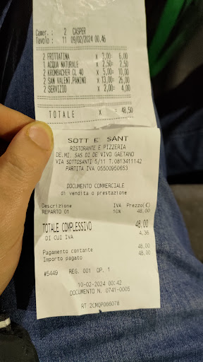 Read moreSott è sant è un buon Locale. Arrivato lì in orario ci fanno accomodare, poco dopo ordiniamo, personale molto gentile, cortese e disponibile. Il servizio è un po' lento. Ordiniamo dei fritti delle pinze e altre cose, i fritti arrivano quasi subito per il resto c'è da aspettare un po' ma nemmeno tantissimo. Il cibo sicuramente sarà di buona qualità però molte delle cose tra cui (patate, crocche, Arancini ecc.) Erano freddi o crudi e appena subito dopo poco l'arrivo. Il servizio è molto professionale, e la location molto bella. Ha davvero del potenziale questo locale, ma deve badare molto alle cotture, troppe cose sono arrivate fredde o crude. Consigliato per chi vuole passare una serata in compagnia e ha un po' di...
