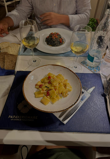 Read moreSiamo stati a cena in due al ristorante Papaveri e Mare di San Vincenzo e l’esperienza è stata davvero sopra le aspettative. In una zona dove l’offerta di bistrot e locali è vastissima, questo ristorante riesce a distinguersi per qualità, cura e professionalità. Fin dal nostro arrivo siamo rimasti colpiti dall’accoglienza e dal servizio: i camerieri si sono dimostrati preparati, gentili e molto attenti, capaci di spiegare i piatti con competenza e di rendere la cena ancora più piacevole. Un servizio davvero impeccabile, che si percepisce fatto con passione e attenzione al dettaglio. Il locale è curato in ogni aspetto: all’ingresso si può scorgere la cucina a vista, ordinata e pulitissima, che trasmette subito fiducia. Anche il personale in sala è sempre in ordine e attento ai dettagli, cosa che contribuisce a dare un’impressione di grande professionalità. Abbiamo scelto di cenare all’esterno: lo spazio è piccolo ma molto gradevole, con la giusta distanza tra i tavoli e un allestimento sobrio e raffinato. L’atmosfera è intima e rilassata, perfetta per godersi una serata senza fretta. La cucina è stata una conferma: piatti di mare creativi, equilibrati e realizzati con ingredienti freschissimi. Ogni portata racconta una cura particolare, sia nella presentazione che nel gusto, riuscendo a unire tradizione e modernità. È evidente che dietro a ogni piatto ci sia uno studio preciso e tanta passione. Per quanto riguarda la prenotazione, il locale non è grandissimo ed è molto richiesto, quindi è consigliabile prenotare con un po’ di anticipo: noi, per scrupolo, abbiamo prenotato una settimana prima (forse anche troppo largo), ma meglio non rischiare se si vuole trovare posto. In sintesi, Papaveri e Mare è un ristorante che unisce eleganza, qualità e un servizio impeccabile. Un’esperienza che ci ha colpiti positivamente e che consiglieremmo senza esitazione a chi cerca a San Vincenzo non il solito bistrot, ma un posto dove vivere una cena speciale, curata nei...
