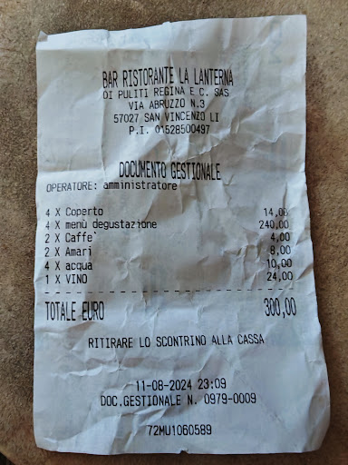 Read moreLa Lanterna è un ristorante che si distingue per la sua posizione incantevole, affacciata sul mare, dove è possibile godere di tramonti davvero suggestivi. Il servizio è gestito da camerieri giovani e professionali, sempre disponibili a rendere l'esperienza dei clienti piacevole. Tuttavia, la mia esperienza culinaria non ha del tutto soddisfatto le aspettative. Abbiamo optato per il menù degustazione, attratti dalla varietà di piatti offerti. Purtroppo, ci siamo trovati di fronte a porzioni piuttosto contenute e prezzi che ci sono sembrati un po' elevati. Il cameriere ci aveva informati che dal menù degustazione sarebbero stati esclusi i piatti di crudo, ma ciò che ci è stato servito ha lasciato un po' a desiderare: porzioni ridotte di antipasto, primo e secondo, oltre a un dolce. Aggiungendo una bottiglia di vino da 24 euro, acqua, due caffè e due limoncelli, il conto finale è stato di 75 euro a testa. Se avessi saputo che il menù degustazione fosse così limitato, avrei preferito scegliere direttamente i piatti che desideravo. Nonostante queste osservazioni, voglio sottolineare che il servizio è stato impeccabile ( a parte una piccola distrazione di un cameriere che sparecchiando ha raccolto tutte le posate insieme tenendole fuori dal piatto, quindi alcuni schizzi di cibo quando si è spostato, sono finiti sul mio braccio, in ogni caso nessun problema solo per consigliare di tenerle sul piatto) la bellezza del posto è indiscutibile. Spero che la direzione possa considerare una revisione del menù per offrire un'esperienza più soddisfacente ai propri clienti. In conclusione, La Lanterna ha un grande potenziale grazie alla sua location e al personale, e confido che possa migliorare...